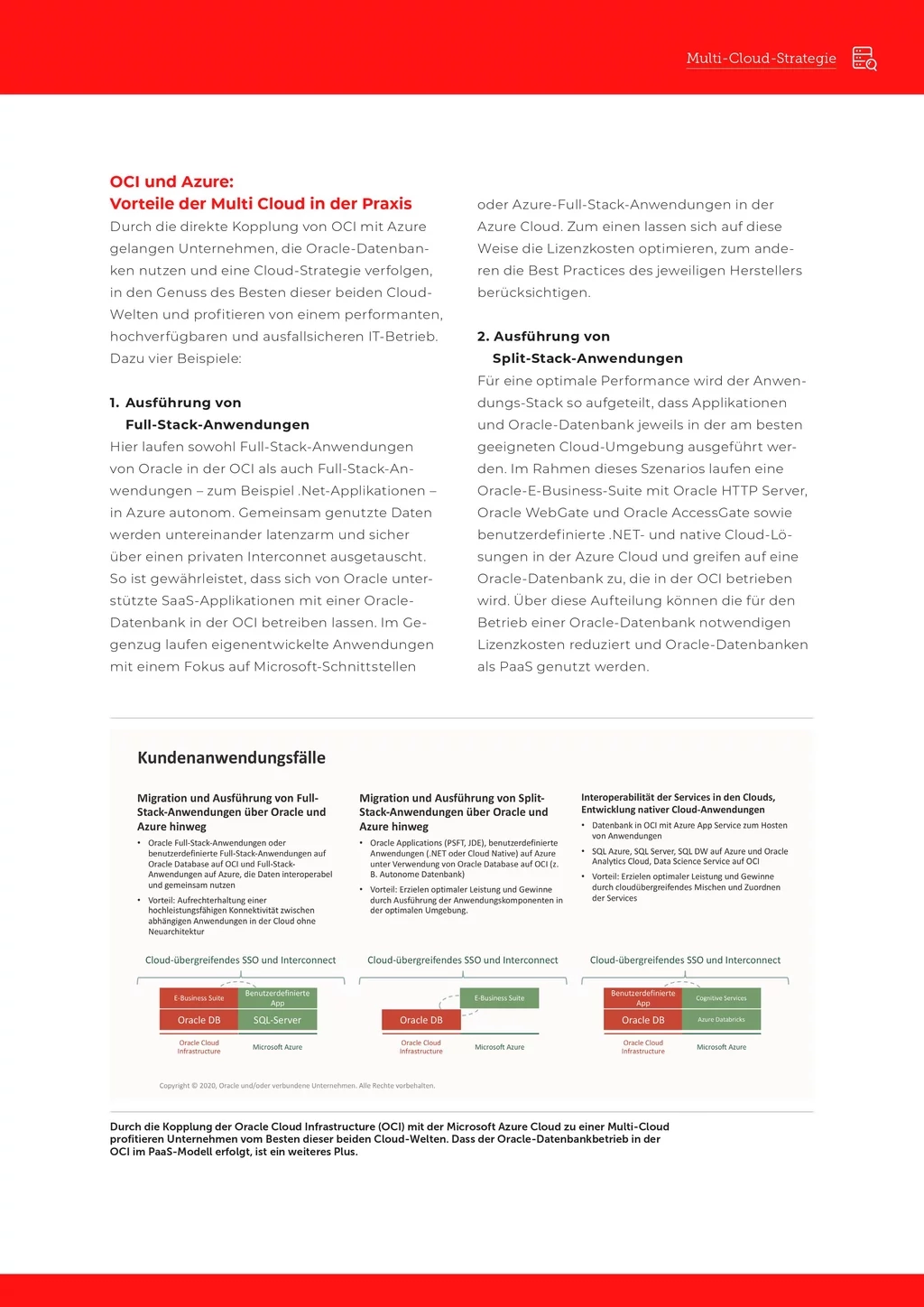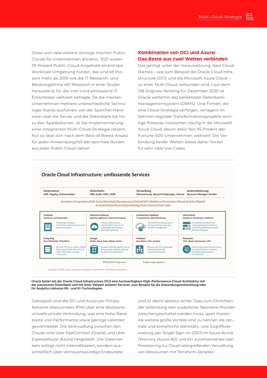 Die Multi Cloud bietet die nötige Flexibilität, um Oracle- und Nicht-Oracle-Applikationen sowie das Backend bzw. Frontend in der Cloud zu betreiben, die sich dafür am besten eignet. Das vorliegende Whitepaper diskutiert die Vorzüge dieser Multi-Cloud für die Praxis und die Kriterien für ihre erfolgreiche Einführung.